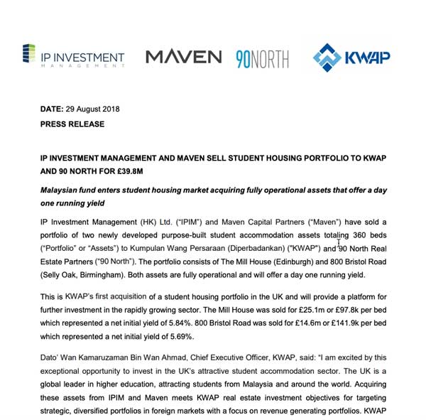 IP Investment Management (IPIM) is a real estate fund manager specialising in direct investments in the living sectors. We seek to generate attractive risk-adjusted returns through the origination and active management of real estate assets in sectors supported by strong demographic trends and markets with favourable fundamentals. With offices in the UK, Hong Kong, and Singapore, we target investments in the UK, Europe, and USA.